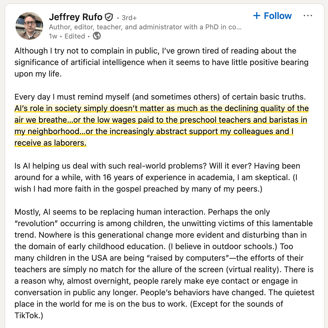 Hey readers, We’re now two weeks away from ChatGPT being 3 years old. It’s safe to say awarness is close to “your uncle telling you to buy bitcoin” stage now. I’ve done my best to cover it. Partly out of morbid curiosity, partly out of bemusement, and partly out of the belief that this technology is (eventually) going to fundamentally change everything. Yet clashing with that belief is a recurring question: “Are we fucked?” Why does it keep popping up? Well - have you seen the movie The Big Short? It's a true story. And a book was written by Michael Lewis. A key role in the movie is played by Christian Bale. And the key player in the real life tale is Michael Burry. He’s famous for predicting the 2008 financial crisis. He’s now making quite “bearish” bids against Nvidia and Palantir - placing Put options on both of them for over $1B. In case you don’t follow economics, investing, or even who these companies are - I got you. (FWIW I had to bone the f**k up to be able to write some of this). Nvidia manufactures graphics chips (GPUs) and has benefited from two major groundswells in the last decade - the first was cryptography and blockchain - to employ these technologies you need GPUs. The second groundswell has (obviously) been generative AI. This technology also requires GPUs (with exceptions - check out Groq) in order to work and currently demand largely outstrips supply. This makes (at the time of writing) Nvidia the most valuable company of all-time. Palantir is lesser known and more secretive. It sells fraud detection, pattern recognition, and works with governments, police, and security forces around the world. It’s been going since 2003 and has enjoyed its highest ever valuation in 2025. Palantir is also the name of one of the tools of evil in The Lord of the Rings. It’s founded by Peter Thiel. He’s kind of Silicon Valley royalty - famous for things like co-founding PayPal, destroying Gawker (also covered in Ryan Holiday’s Conspiracy), co-writing a great read called Zero to One, and more recently - recreationally opining on the advent of The Antichrist. The reason he gets a mention here (other than that being an impressive collection of facts above) is that he has joined Michael Burry in offloading Nvidia stocks. These moves in isolation still don’t mean much - the counterpoints to this are they are just two people who have regularly got things wrong, and the company is worth much more than any withdrawn stock. On the other hand, one of the people who predicted the 2008 crisis and literally one of the most powerful men in Silicon Valley are backing away... But I’m not an investor (my beloved Sobah went into liquidation!) So let’s look at things through another lens, such as people’s sentiments. I’m seeing a lot of hate for AI out there.