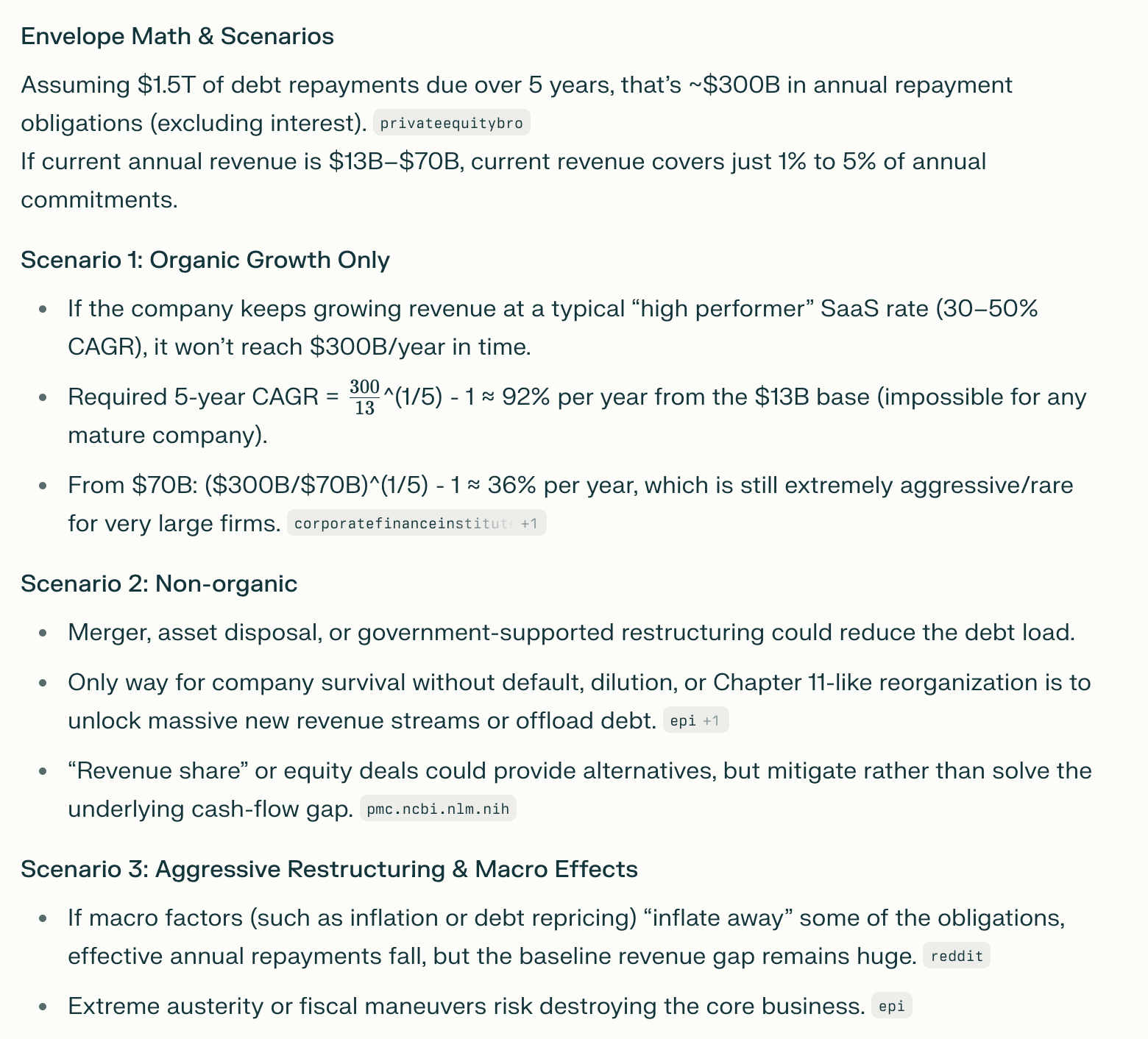 And I love this take from a teacher named Jeffrey: The people are getting frustrated. I think some of this backlash points to a desire for something more human and connected. But I also believe that - like a self-absorbed “friend” who behaves anything like one - people will simply stop engaging them and let it drift away. This will take longer than makes sense - but it will happen. But what about the gorilla in the room? OpenAI will go down in history for putting a version of AI on the map that fundamentally changed the direction of technology investment. But it will also go down. I loved this line “OpenAI is Speedrunning the 2008 Financial Crisis”. They lose $3 for every $1 they make. They’ve done $1.5T worth of deals without legal advice (paywalled). This snippet is an entertaining summary. It’s incredibly over-leveraged and will require people paying multiple orders of magnitude more for it than they currently do. Which is not what people want to do, and harder to justify when there are multiple other companies offering very similar products that are ready to step in (open source models, Google, Groq). Since starting this newsletter I’ve “got to know” the public face of Sam Altman. I saw him in Melbourne when he did his tour in June 2023. I remember being in the room and hearing the words “harness the power of capitalism” and wondering what he meant. Compare that with a couple of weeks ago... Sam doesn't like the nature of Brad's question. I want to zero in on this bit: “We do plan for revenue to grow steeply. Revenue is growing steeply.” Finance isn’t my strong suit - but I have managed sales targets and want to know - how steeply is steeply? So I ran some envelope math with Perplexity: To grow steeply - the company would need to exceed a triple-triple-double-double (a classic term in SaaS for hockeystick growth). To do this at the scale they’re at is insane. “Anyone claiming a plan to T2D2 their way out of a $1T+ debt load, starting from below $100B revenue, is selling a fantasy—there is simply no precedent or plausible financial path.” There’s more of course. But I’m kind of surprised/bemused that it’s not as frequently pointed to in the circles I’m in. This information is hiding in plain sight. There’s also something to be said for moving later... The iPod wasn’t the first MP3 player. Facebook wasn’t the first social media. And I suspect the winner of this charade won’t be its current leader. -Marshy p.s. I’m thinking about ways I can sustain this wonderful corner of my life while the rest of my life is so busy and am now taking suggestions! 🤣 |